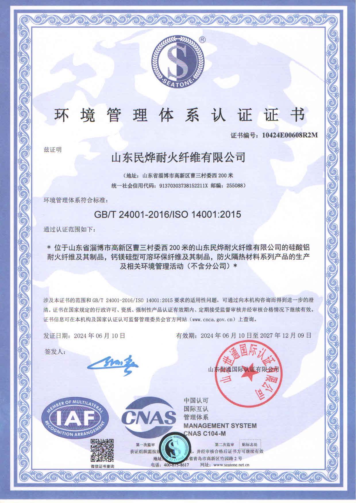 • 2024年環(huán)境體系認(rèn)證證書(shū)